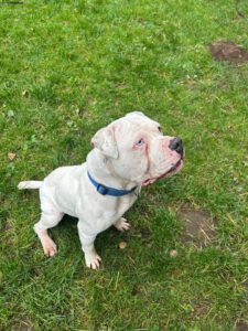 Ich heiße Ice und bin ein Staffordshiremix. Ich bin ein junger Rüde, der sehr überschwänglich ist typisch meiner Rasse. Ich muss Ruhe lernen und das 1×1 des Grundgehorsams, das war den Vorbesitzern anscheinend nicht wichtig. Ich komme von einem anderen Tierheim, in dem in nur kurze Zeit saß, über meine Vorgeschichte ist nicht viel bekannt, ich war wohl ein Wanderpokal, der auch 3 Menschen verletzt hat, die Situationen sind aber unbekannt. Nach der jetztigen Einschätzung bin ich nicht wirklich schwierig. Ich bin freundlich zu Menschen, brauche eine ruhige klare Führung. Kinder und Katzen sehen wir nicht in meinem neuen zu Hause. Bewegungsreize fallen mir schwer sie auszuhalten.