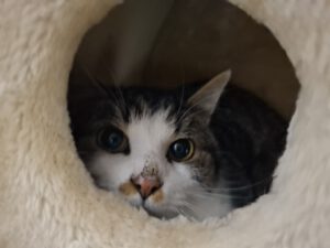 Wir suchen für sie Menschen, die sich Zeit nehmen, damit Katness in Ruhe ankommen kann. Ob sie jedoch wirklich eine menschenbezogene Katze wird können wir derzeit nicht sagen.